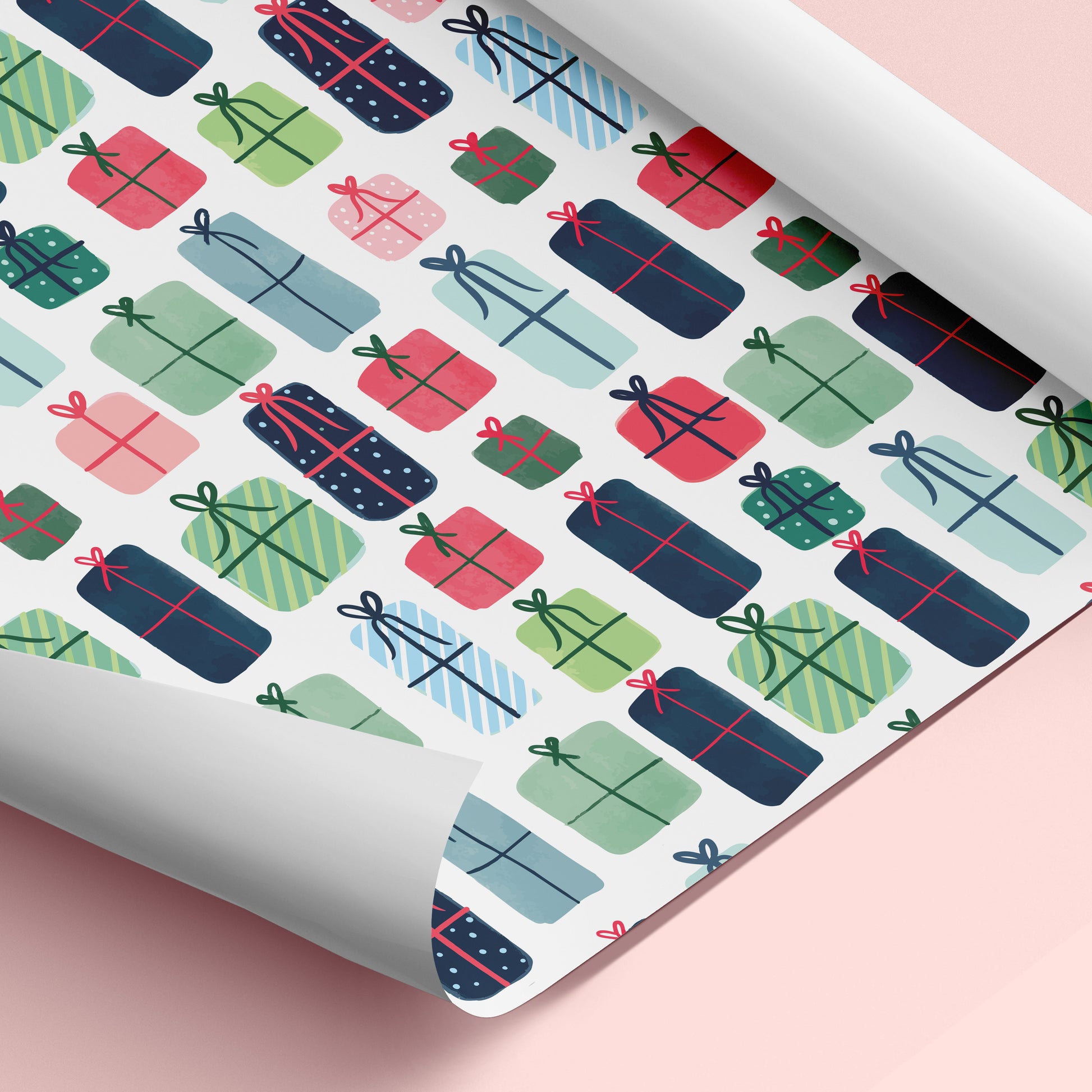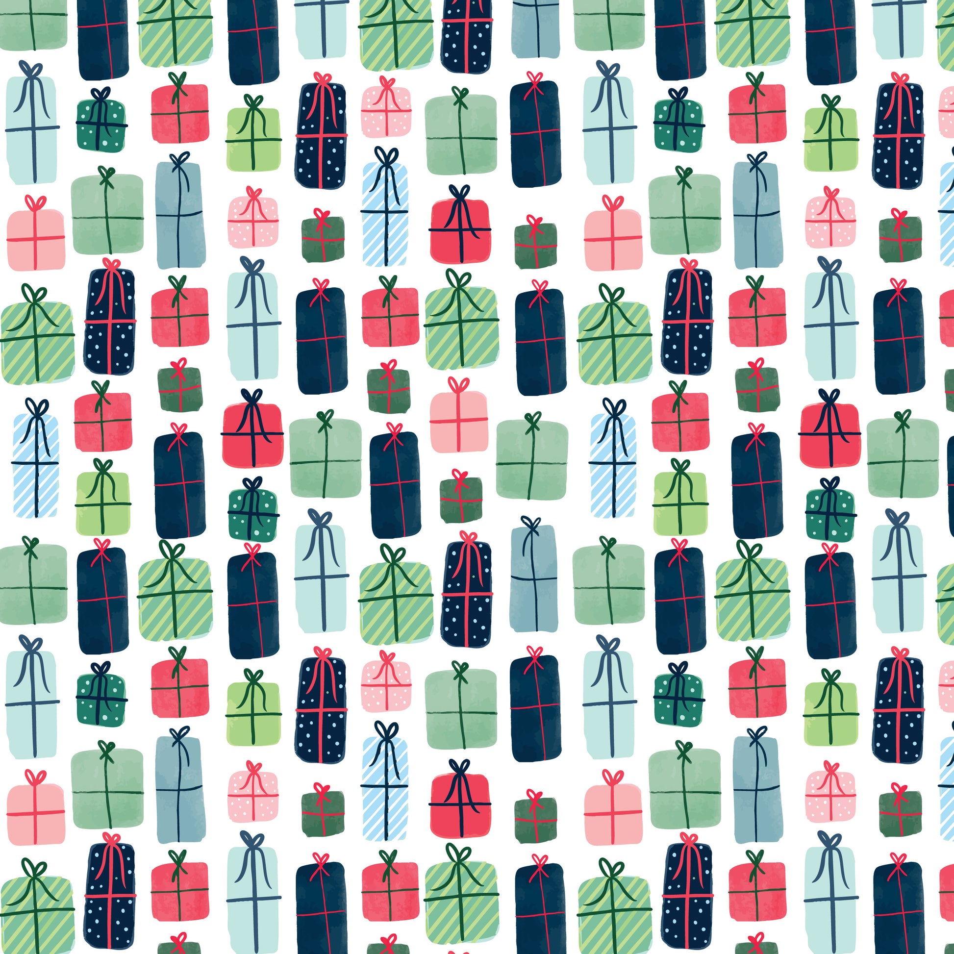 A playful cascade of boxes, bows, and surprise—this pattern wraps gifts in the promise of joy, anticipation, and all the magic of Christmas morning.